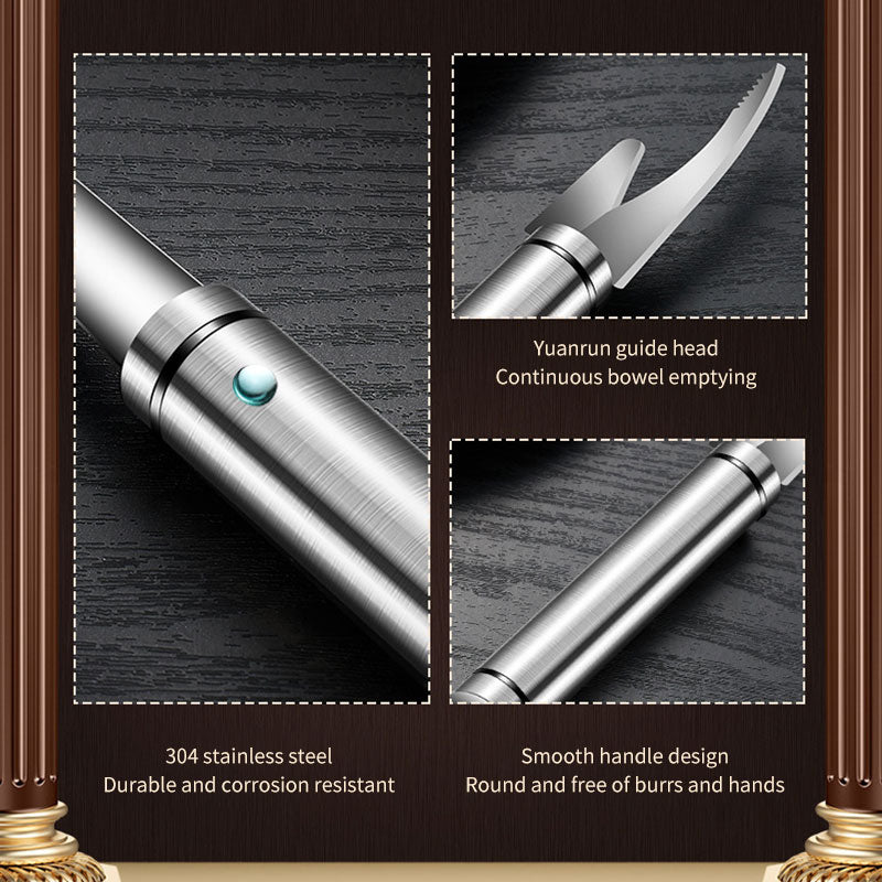 Easy-to-use, ergonomic handles for maximum comfort, riveted connection for more flexible rotation. Simply peel, gut and cut – all in one smooth motion – without a knife!