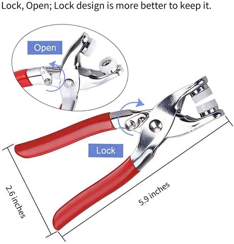- Place the colored hollow spike ring and male snap fastener in the pliers. Repeat this step with the thin hollow spike ring and female snap fastener.
